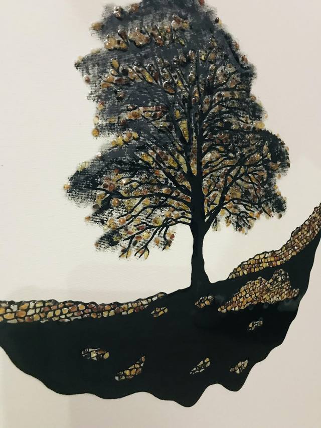 Baltic Amber on canvas board, framed. All handmade and acrylic hand painted with epoxy resin. Unique and one of a kind art work. 56/46cm 22”/18” with frame.